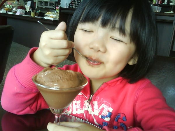 有時候馨馨會陪我上咖啡館,我點咖啡時會幫她點個小點心,這次在 Tina月眉館她一入門就被門口義式冰淇淋給吸引住,一直不斷跑到櫃子前大叫:「我要點什麼顏色的啊