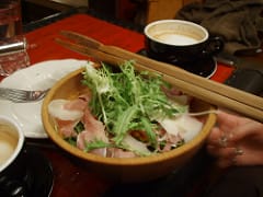 昨天晚餐,我的芝麻葉沙拉瑪起司火腿肉+拿…