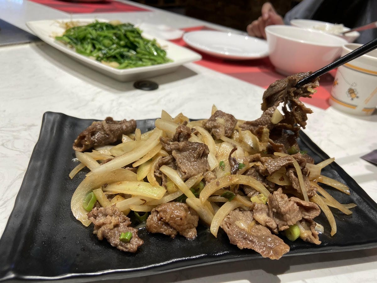 菜盤可以換肉,我們用一個菜盤換了牛肉,一家五口飽到不行